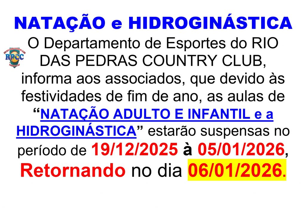 07/11/2025 - Comunicado da Natação e Hidroginástica